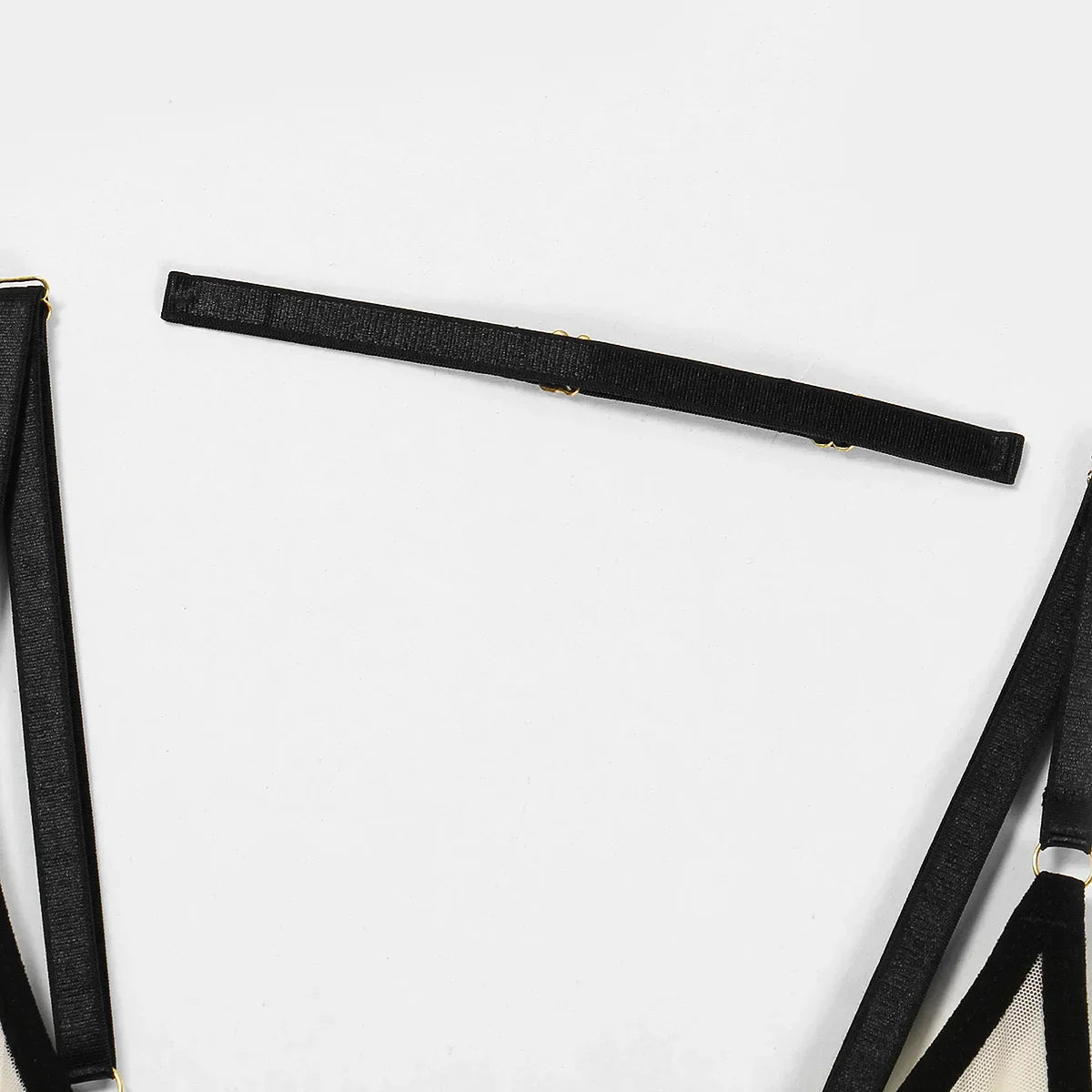 ELLIOT BLACK MESH 4 PIECE LINGERIE SET